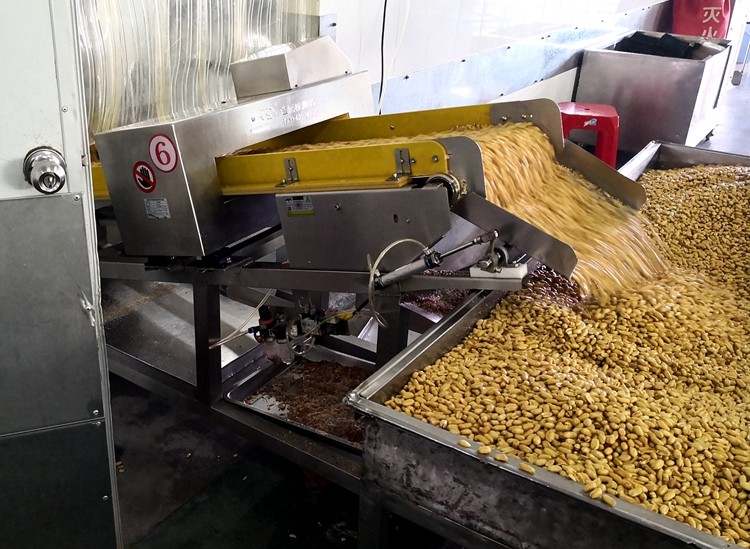 傻二哥定制的連之新第一代斜坡式炒花生高溫出料金屬檢測機: